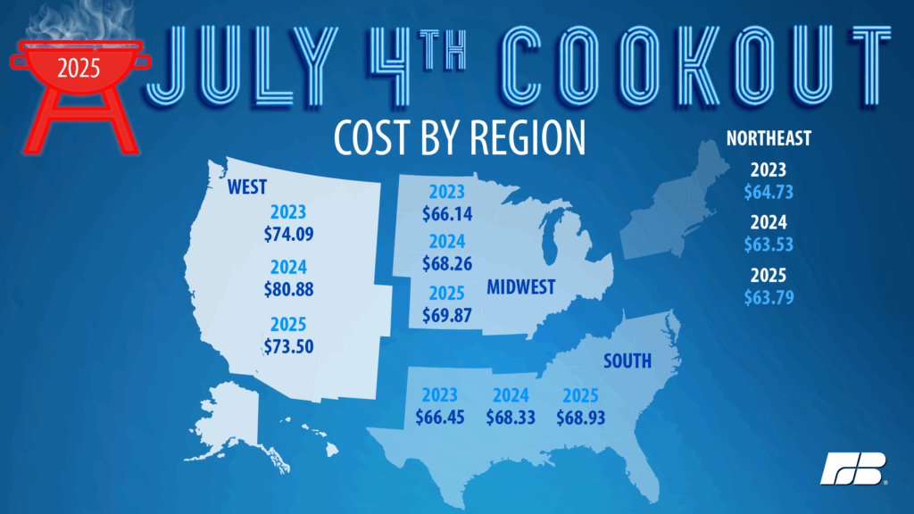 WASHINGTON, June 25, 2025 – Families celebrating the Fourth of July holiday continue to find high prices at the grocery store, based on the 2025 American Farm Bureau Federation annual marketbasket survey. An Independence Day cookout will cost $70.92 for 10 guests this year.