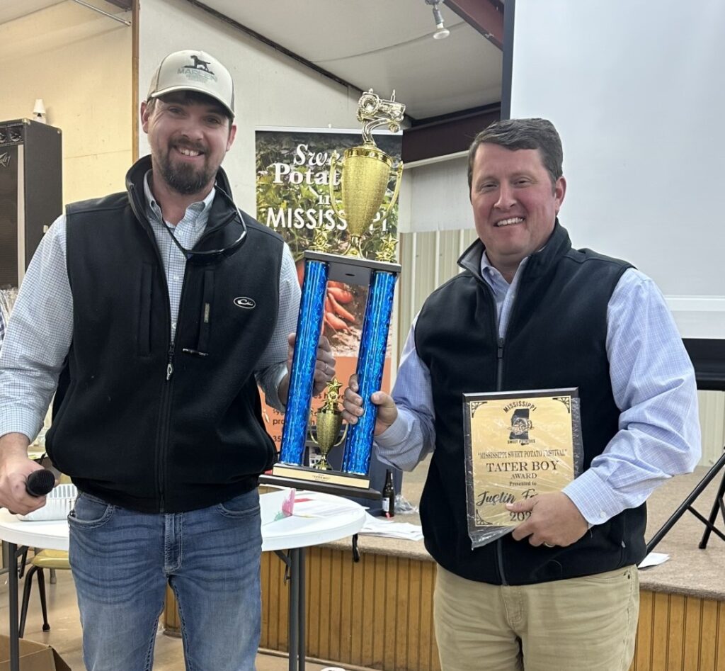 The Mississippi Sweet Potato Council awards one individual The Tater Boy each year at its annual meeting in January. Mississippi Farm Bureau Federation’s National Affairs Coordinator Justin Ferguson was recognized as the 2025 Tater Boy by unanimous vote of the Council and was presented the award by Mississippi Sweet Potato Council President Caleb Englert.